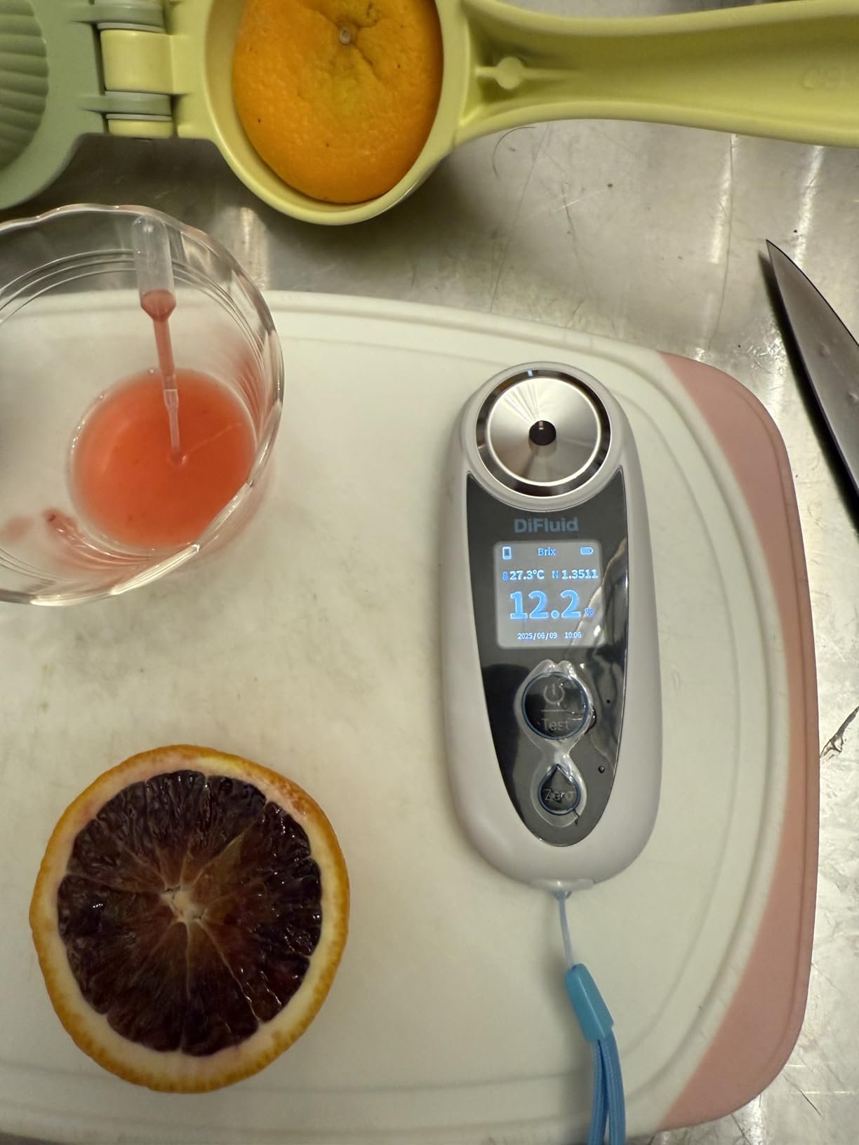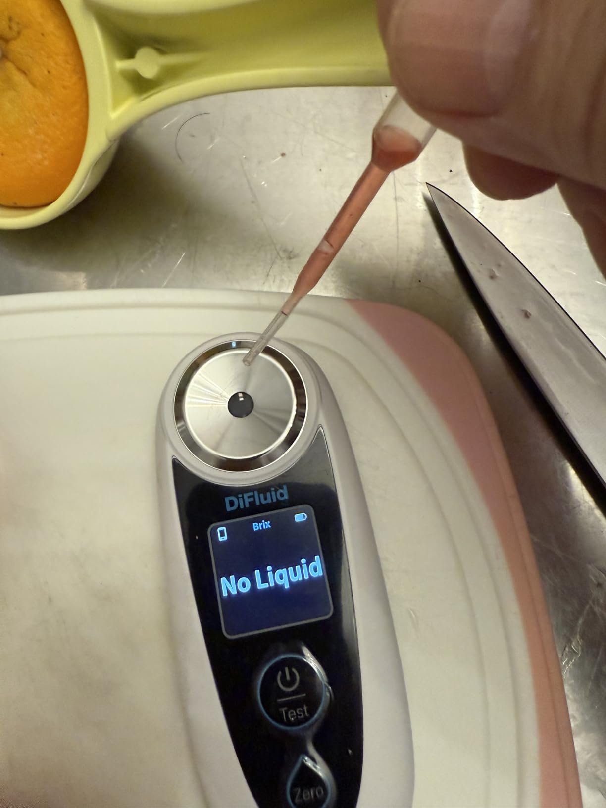 I’m sure there are countless uses for a refractometer like this item. However, I am particularly keen to have gotten this as I farm about 80 acres of oranges and mandarins. While I’ve hired a farm manager to run the place I like to be in the know when things are happening. One of the biggest events is harvesting the fruit and the major deciding factor of when that is happening is the sugar content of the fruit measured in Brix degrees. Hence my joy in getting this item. It is so easy to use. You turn it on, then I like to zero it with a drop of water. I then cut the fruit, juice it, strain it and place a drop of juice on the lens of the refractometer and push the power/test button. A few seconds later gives you the percentage of sugar in brix degrees, in my case 12.2 , a perfectly sweet blood orange! This is a useful tool to have around and I imagine cooks would find many uses as well.