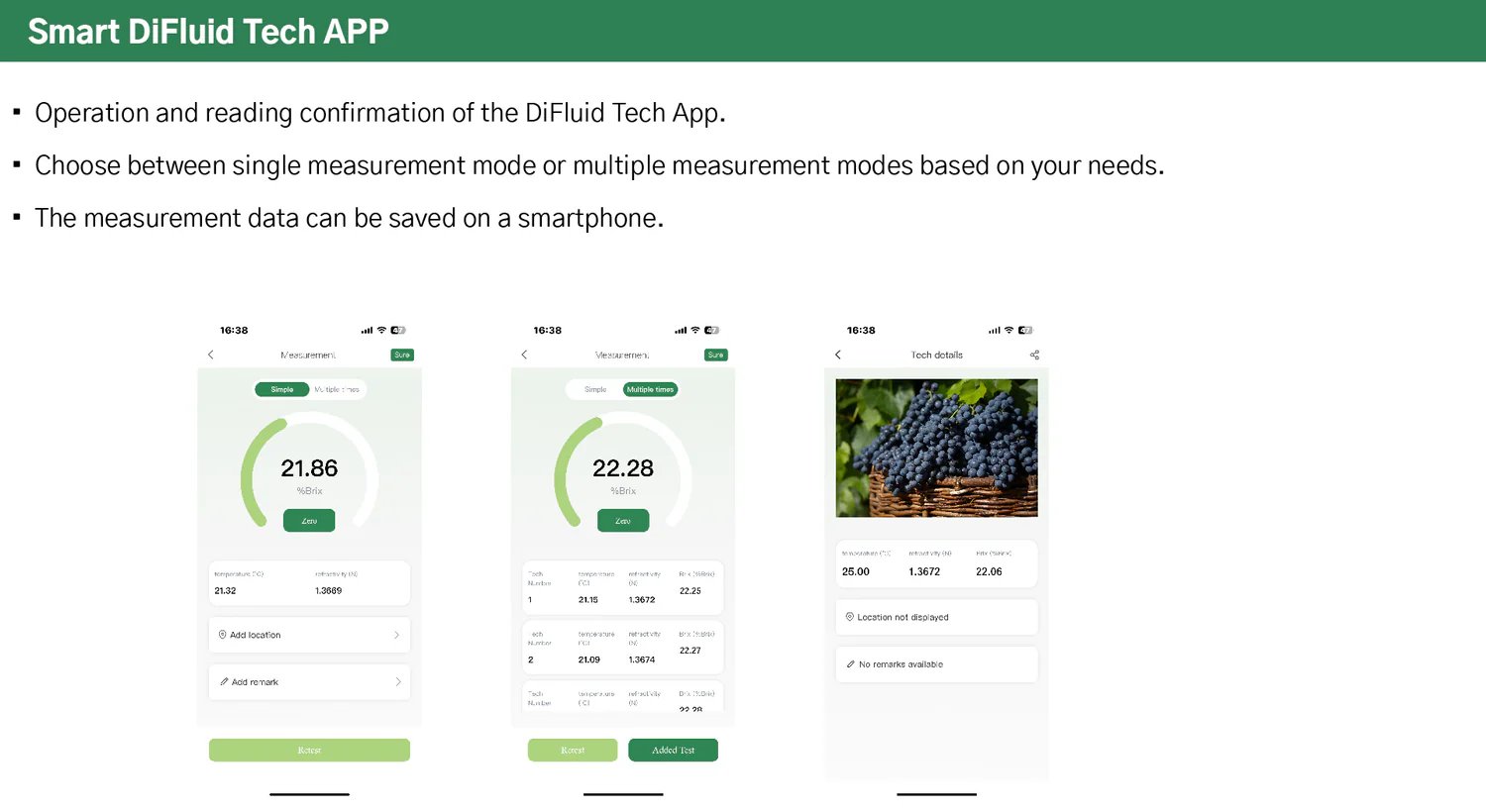 Highly recommended! I’d heard about the Difluid sugar refractometer brand for a while, and it was my trust in the brand that led me to purchase several units. The seller was very patient in answering my questions. The side data readings are stable, the app connects to my phone seamlessly, and it looks great. It’s easy to carry, comes with a protective case, and the build quality is excellent.